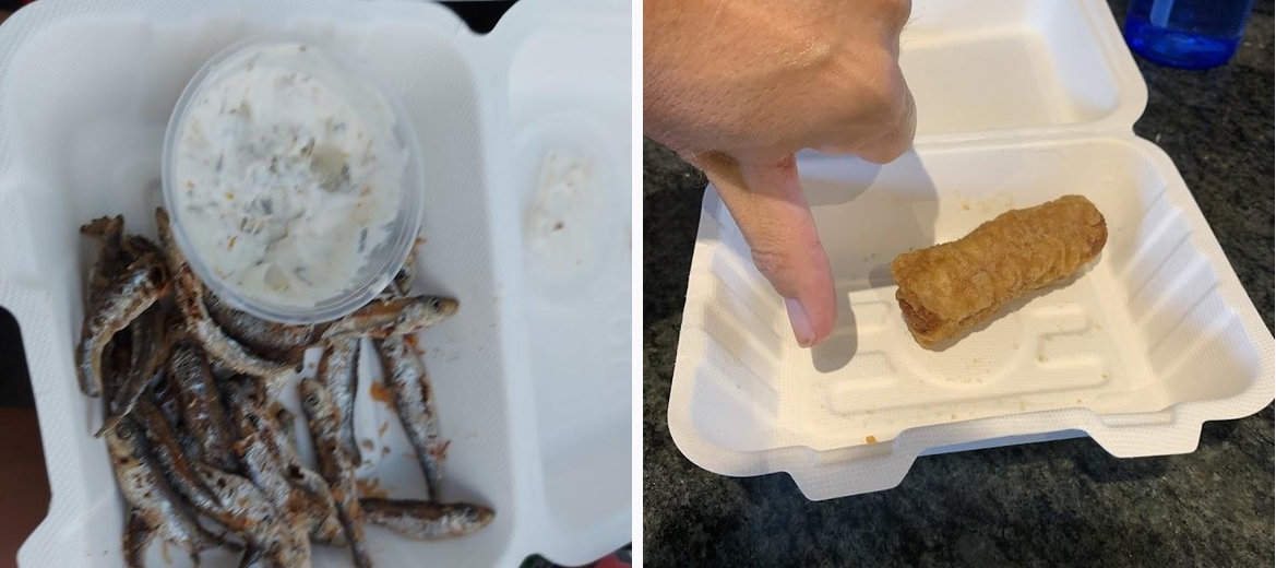 The cod and chips are a standout, along with the halloumi and mushy peas. They also serve a variety of items like scampi, chicken bites, and sausages.